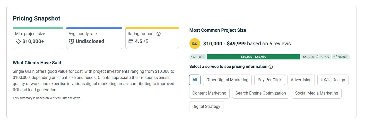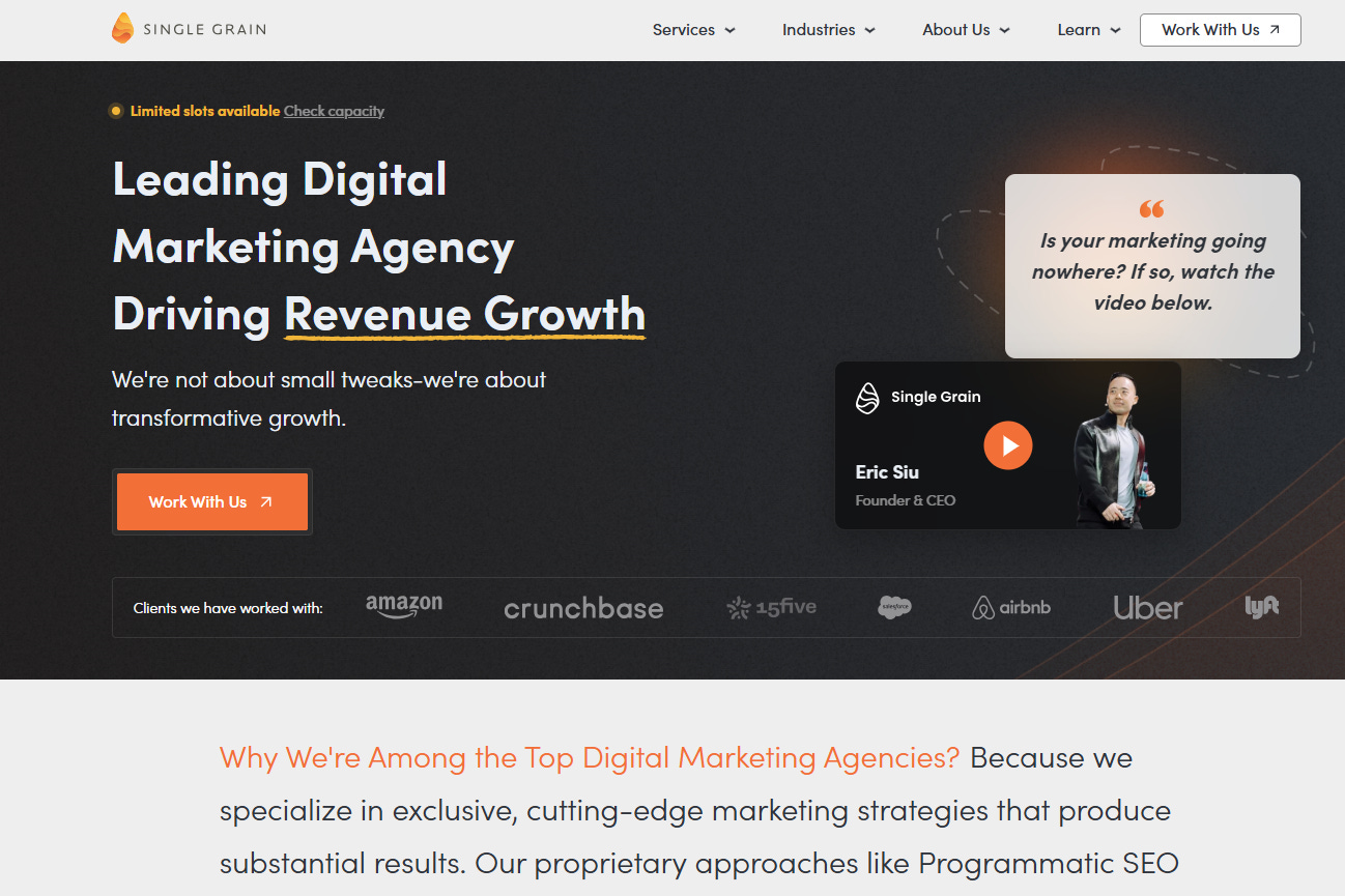 Single Grain: The agency focuses on personalization at scale with programmatic paid media for broad, intent-driven plays.