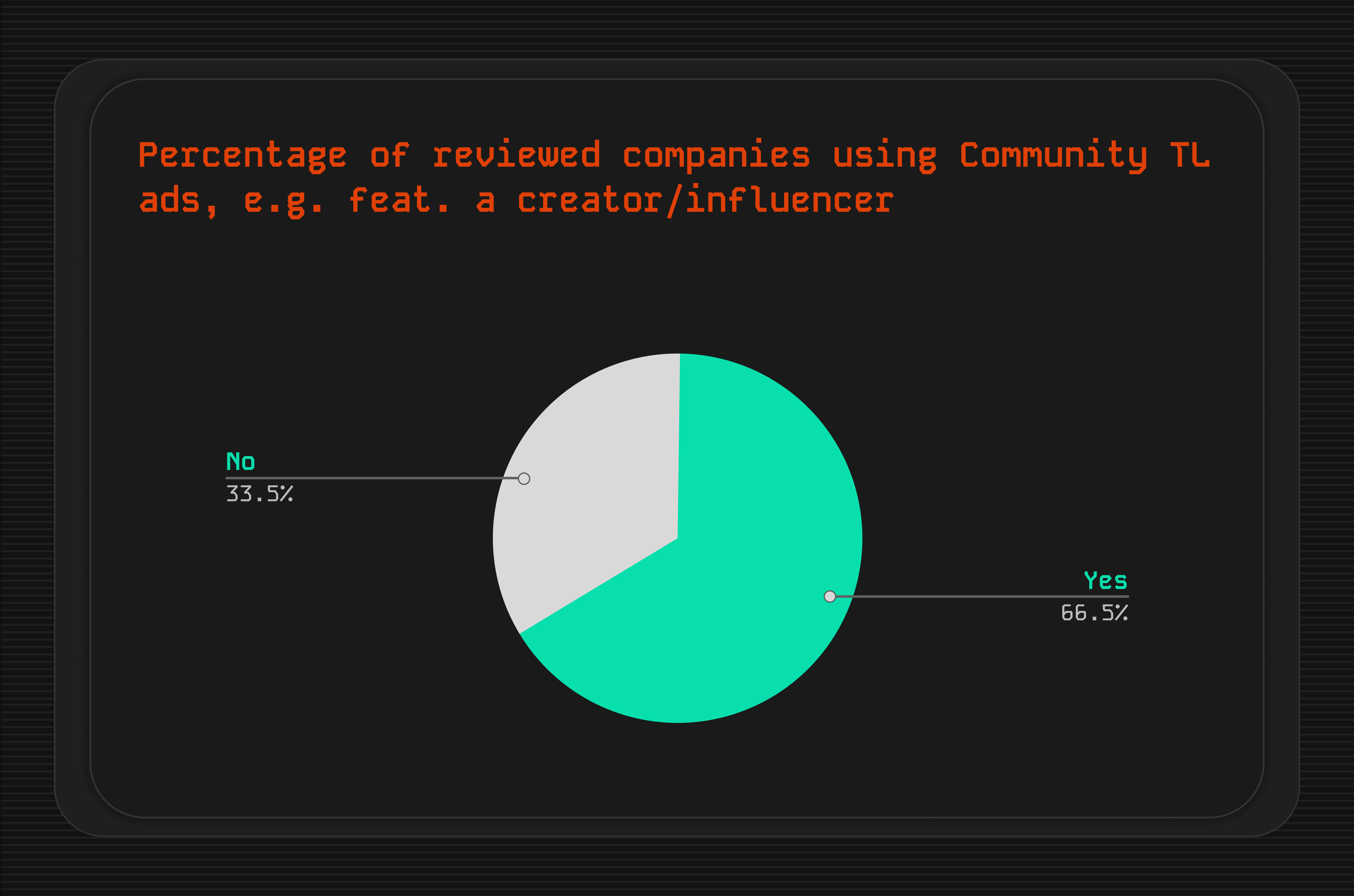 66.5% ran Community TL ads featuring a creator or an influencer.